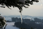 Immer wieder schön zu beobachten, wie viel Kraft die Märzensonne hat. Der Schnee, der auf den Tannästen liegt, wird durch die Erwärmung der Nadeln durch die Sonne geschmolzen. Das Wasser gefriert dann beim Tropfen aber gleich wieder.