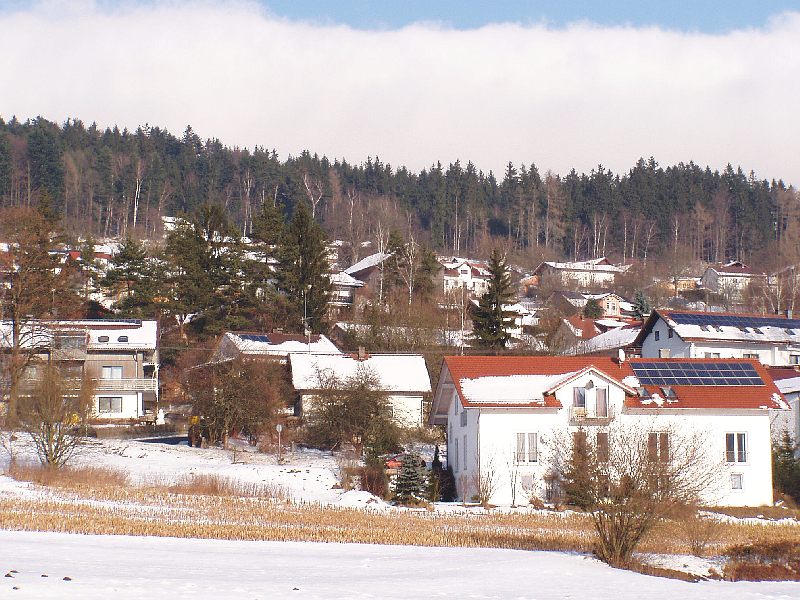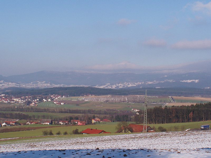 Zuerst mal als Kontrast, und damit die Schneelosen zum Trost auch sehen, daß es hier Gebiete gibt, wo nichts liegt, ein Blick ins Chambtal zwischen Cham und Furth