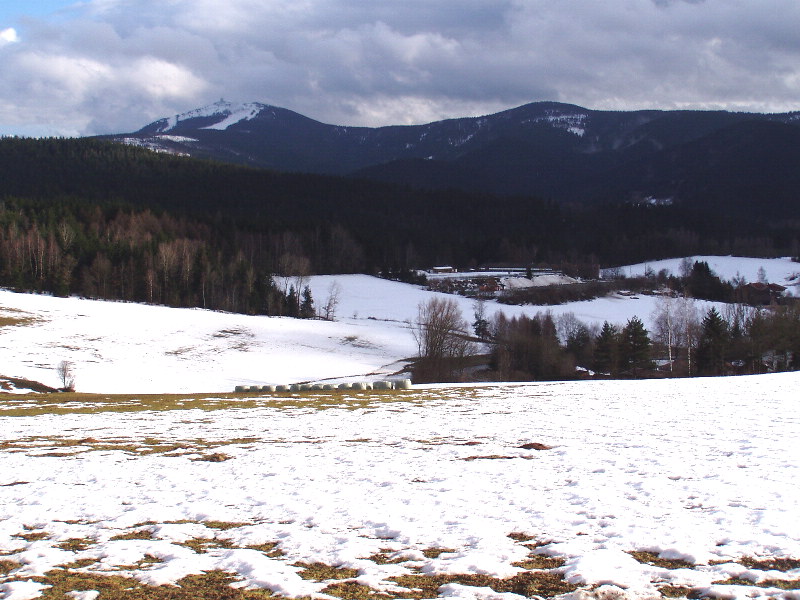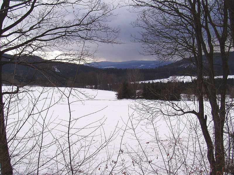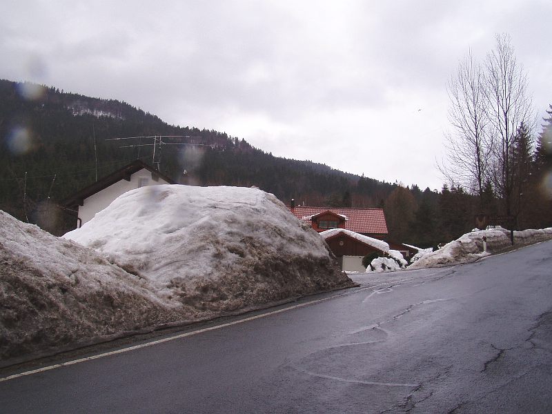 Auch im Tal bei Lohberg ists noch weiß (700 m), aber weniger Schnee als in Bodenmais.