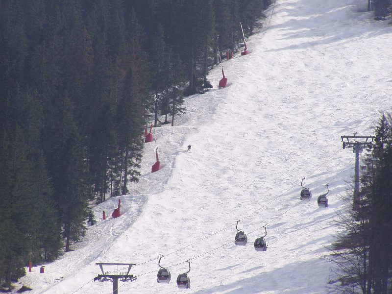 am Fuß des Arbers. Stellenweise kriegt die Piste langsam Löcher, aber Skifahren ist noch möglich