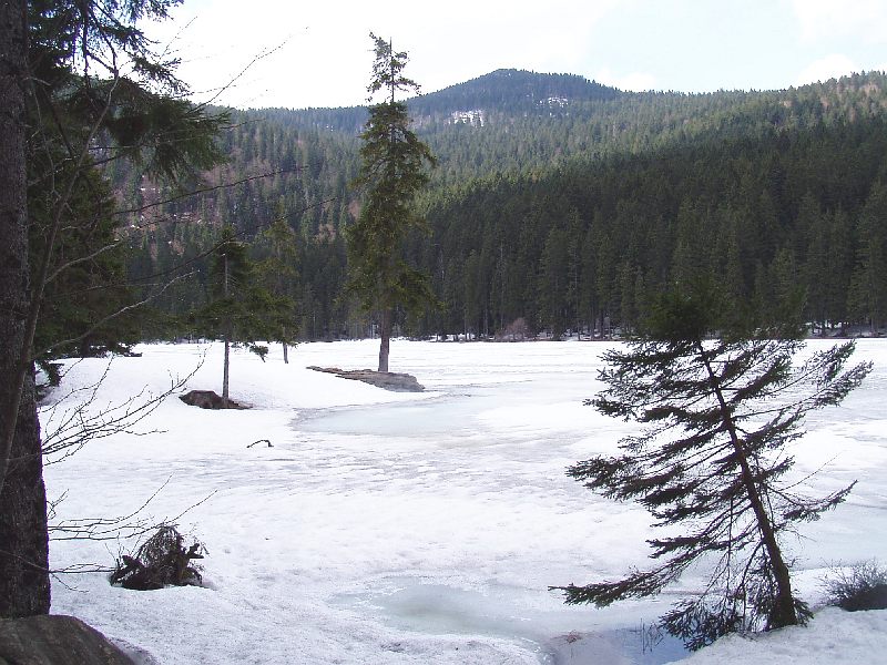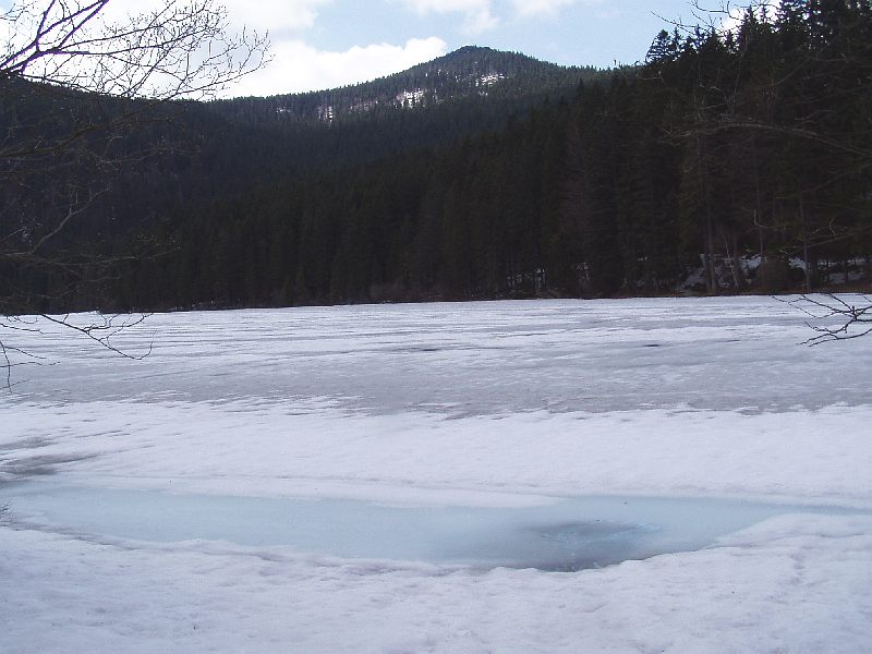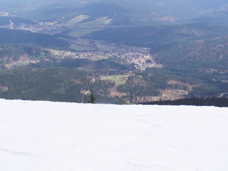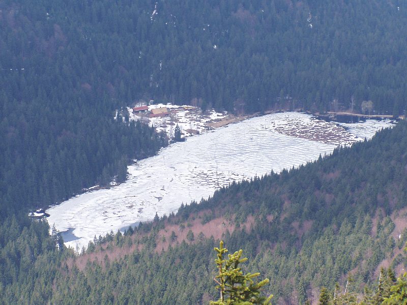 Tiefblick zum Kl. Arbersee (917 m), noch zugefroren