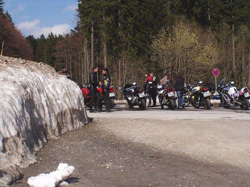 Wieder ein Motorradltour-Tag heute, hier neben dem Schneehaufen am Seehaus