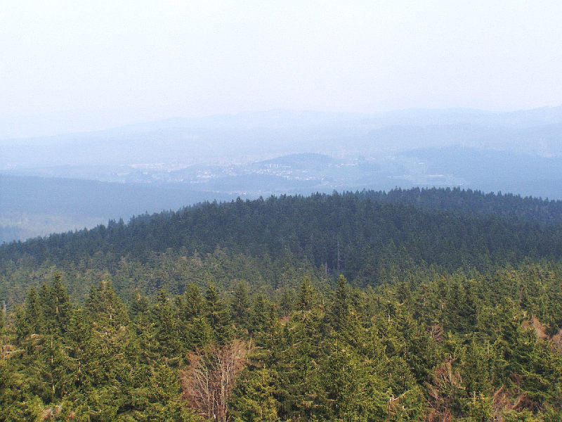 Am Aussichtsturm. Im Tal unten liegt der bekannte MM-Standort Haidmühle