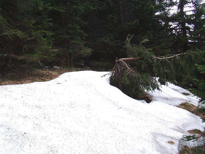 Hier sind noch bis 50 cm hohe Schneereste