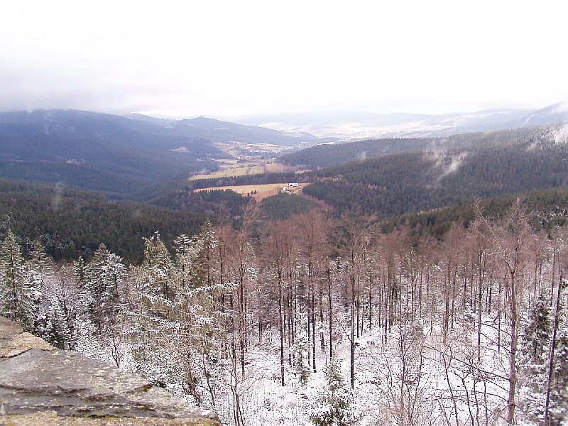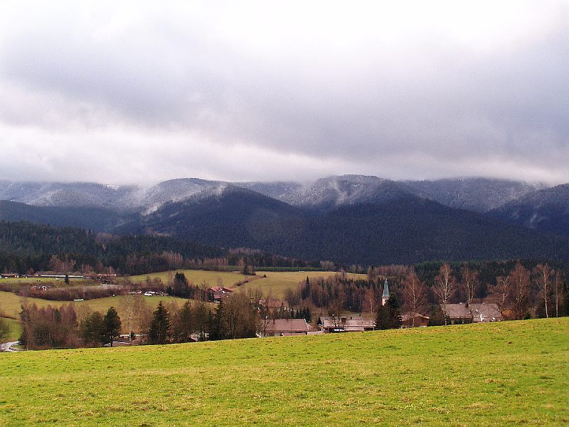 Hier ein Blick von Lohberg zum oben verschneiten Kamm