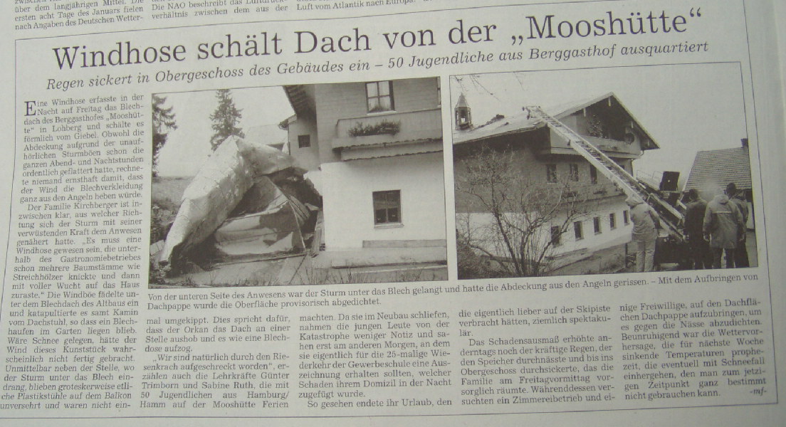 Wie berichtet gabs bei der Mooshütte die stärksten Schäden. Hier ein Zeitungsbericht