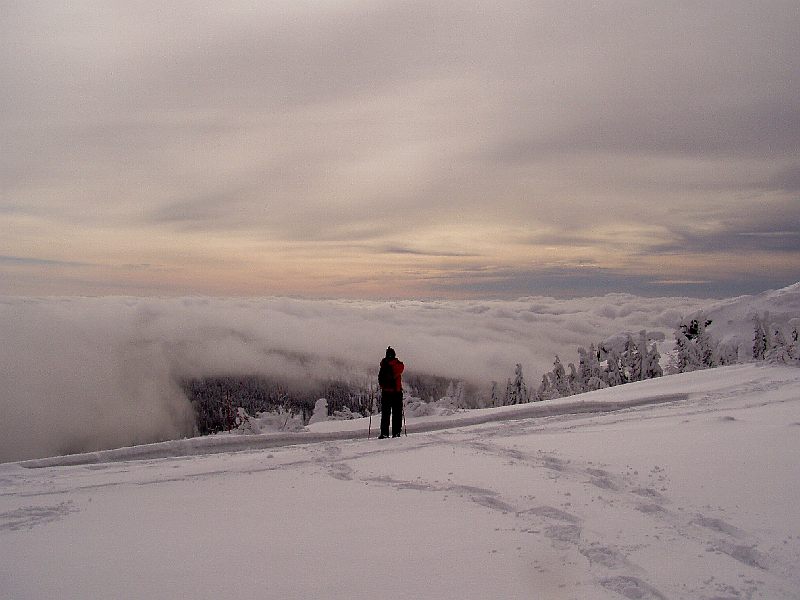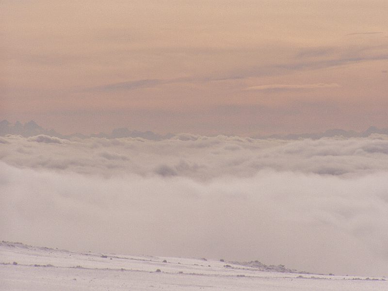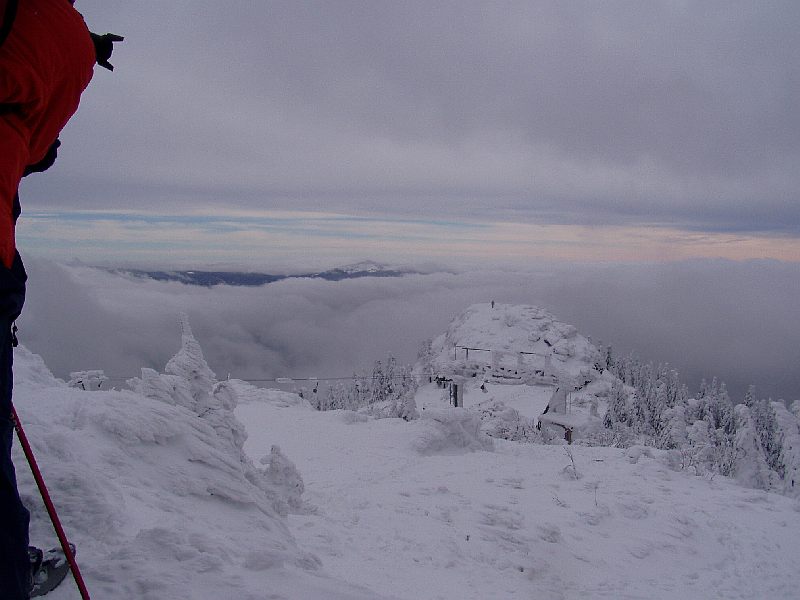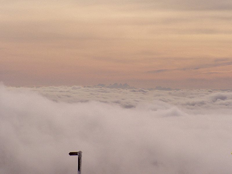 Plötzlich, wir waren schon am Gipfel, dann das Wunder. Der Nebel senkts sich auf etwa Gipfelniveau und bot teils gute Sicht drüber.