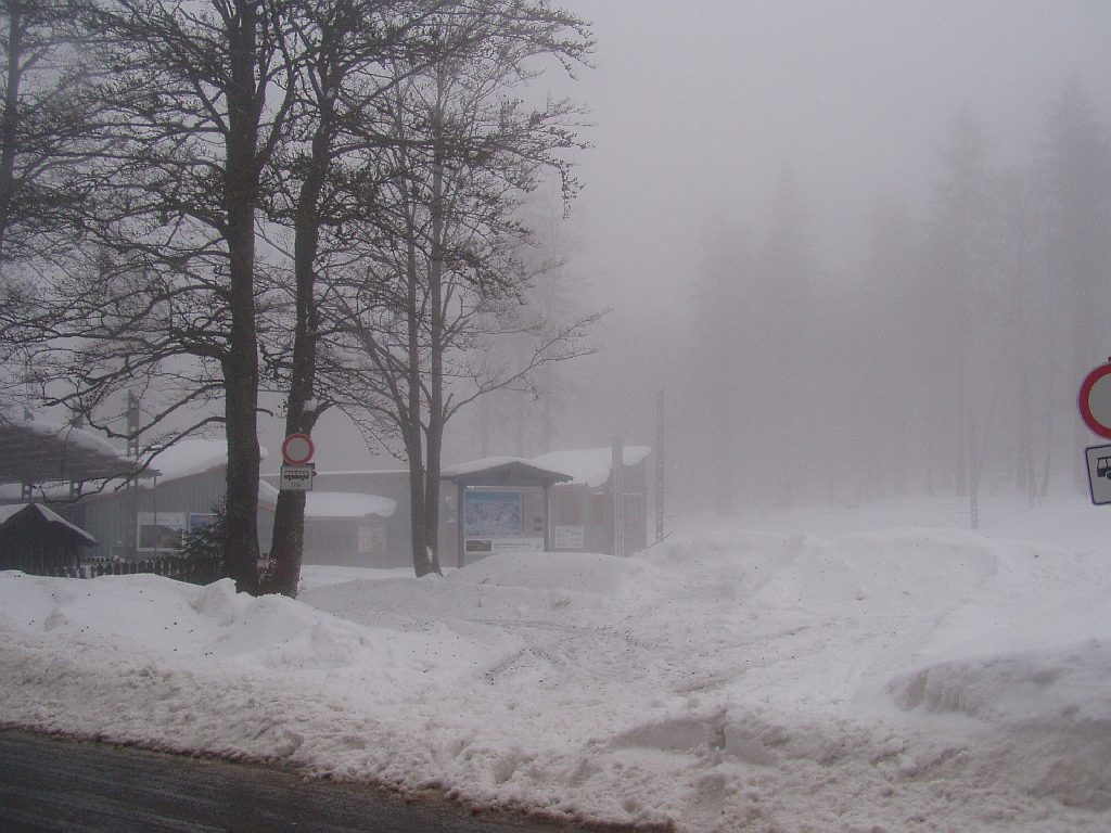 Über Bodenmais fuhr ich zuerst zum Bretterschachten hoch. aber auch dort regnete es (1120 m) bei+1°