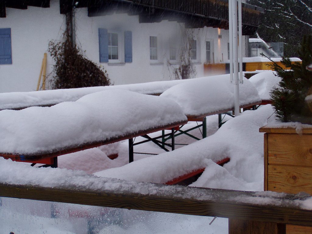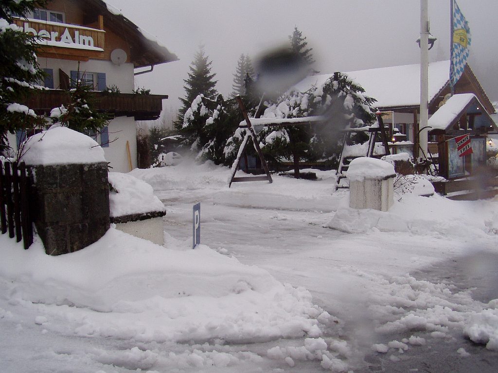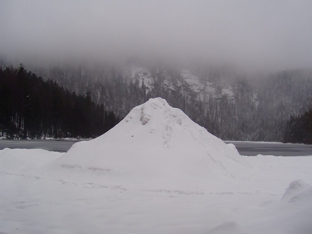 Den obligatorischen Schneehaufen gibts auch schon. 3 m ist er schon hoch. Mal sehen, wie hoch er heuer wird.