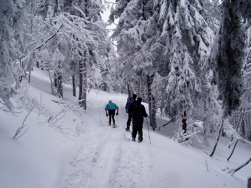 Dann nach weiteren 5 km gings zum Aufstieg zum Arber mit Schneeschuhen.