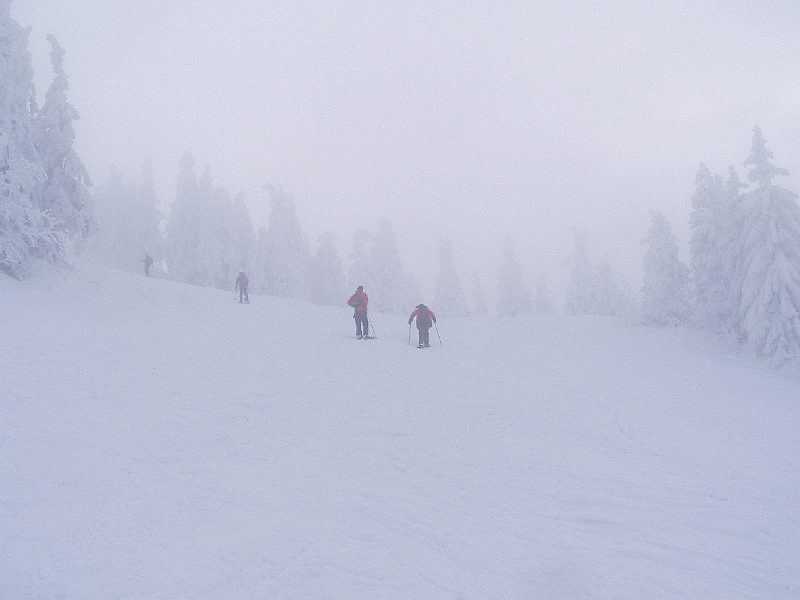 Mit klammen Fingern und total durchgefroren gings dann wieder talwärts. Einstimmiges Fazit der Teilnehmer war, daß das die bisher lohnendste Arbertour war. total abwechslungsreich. Da sage noch wer, der Winter wär vorbei oder Inversion wär langweilig.