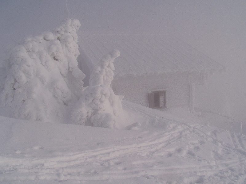 Wieder ein gespenstig verreiftes Häuschen. die Zwieseler Hütte.