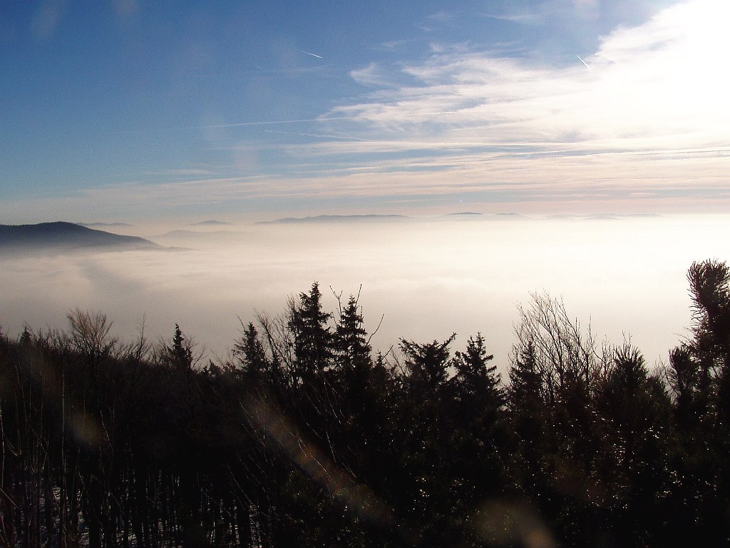 Blick ins Arbergebiet. Im Tal dazwischen (Weißer Regen) allerdings eher Dunst als Nebel.