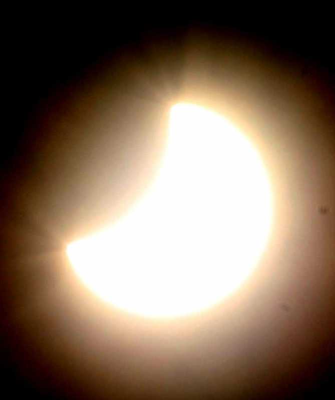 In unserer Region schob sich der Mond um 9.26 Uhr Mond vor die Sonne. Eine Stunde und acht Minuten war es zusehends finsterer. Die maximale Verdunkelung von 72% hatten wir um 10.34 Uhr erreicht und um 11.46 Uhr schien die Sonne wieder mondfrei.