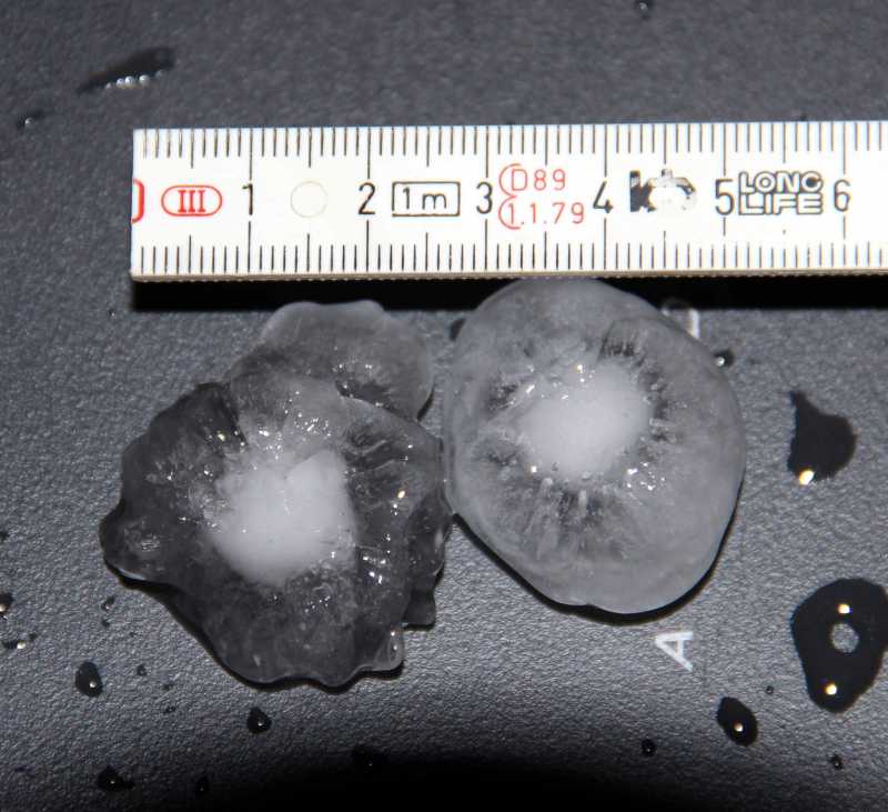 am 06. Juni hatten wir ein Hagelgewitter mit bis zu 5 cm großen Hagelkörnern die erhebliche Schäden an Autos, Gebäuden und Vegetation angerichtet haben - Schaden an meinem Wagen 4.800 Euro, obwohl ich gleich unter ein Dach gefahren bin. 2 Km westlich und 5 Km östlich schien die Sonne, es kam nicht einmal einen Tropfen Regen herunter.