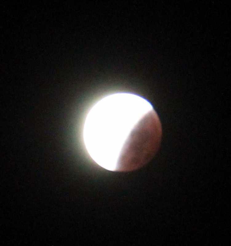 Der Mond drang immer tiefer in den Kernschatten der Erde ein – bis er um 04:15 Uhr vollständig darin verschwunden war. Die Mitte der Finsternis wurde um 04:50 Uhr erreicht. Danach wanderte der Mond langsam wieder aus dem Kernschatten der Erde.