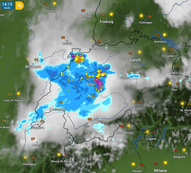 Ein tolles Bild von soeben - das Gewitter das von West nach Ost durch die Schweiz zog.