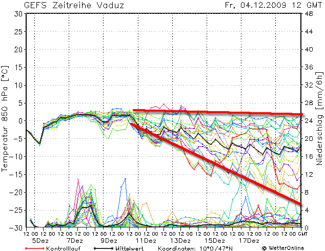 wenn die Strömung später auf Nord/Nordwest dreht, sind auch stärkere Niederschläge in fester Form im Bereich des Möglichen.