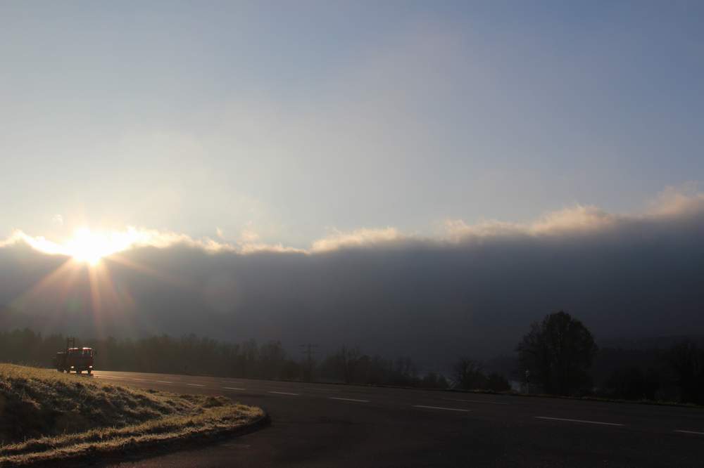 Nebelgrenze auf der B34 zwischen Schwörstadt und Bad Säckingen