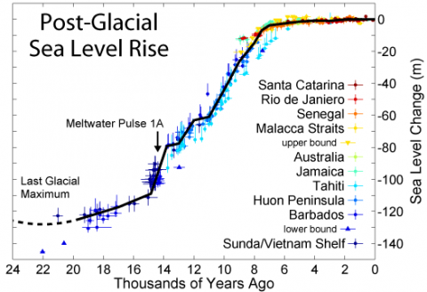 Meeresspiegel in den vergangenen paar Jahrtausenden.