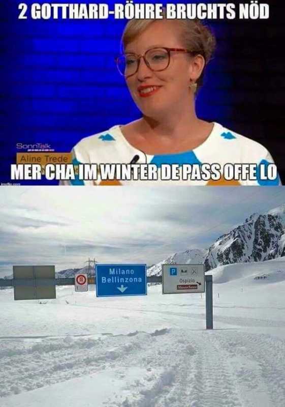 Apropos: Wir haben ja schon Grüne im Nationalrat, welche über einen ausgesprochen hohen IQ verfügen. Zum Beispiel unsere Aline Trede, welche doch tatsächlich meint, den Gotthard könne man im Winter locker offen lassen....