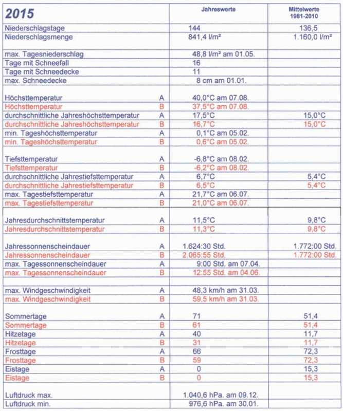 Hier die Schwörstädter Wetterbesonderheiten des Witterungsjahres 2015: