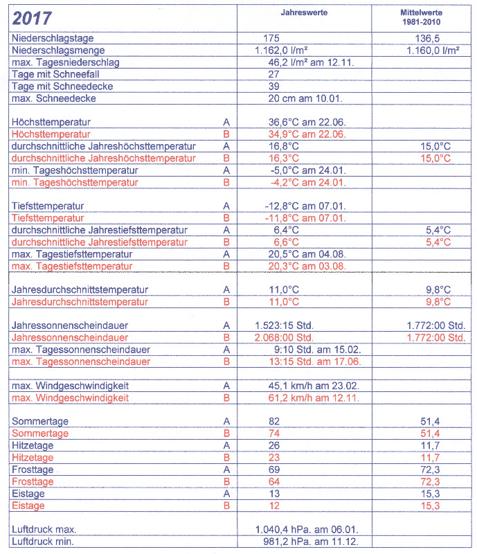 Hier die Schwörstädter Wetterbesonderheiten des Witterungsjahres 2017: