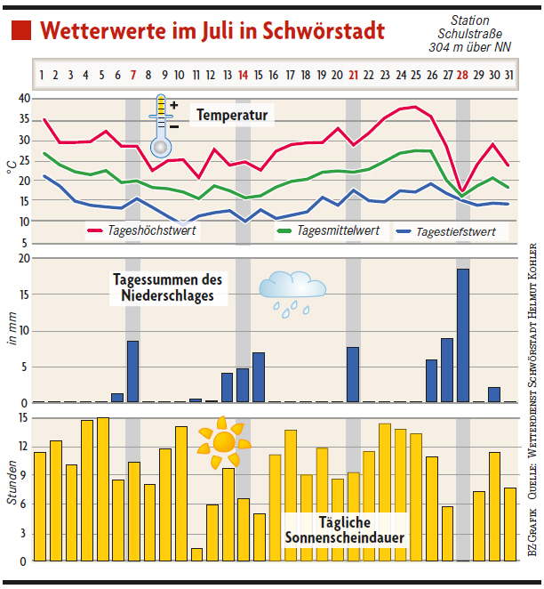 Hier der Rückblick auf das Juliwetter von 79739 Schwörstadt: