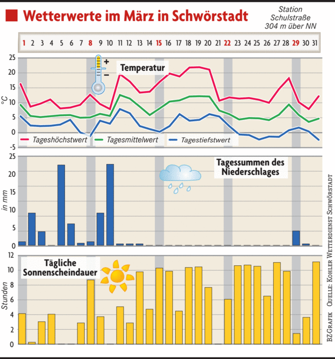 hier der Märzrückblick der Wetterstationen Schwörstadt:
