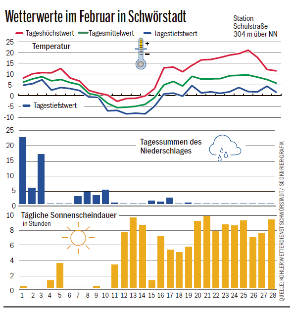 hier der Rückblick auf den letzten meteorologischen Wintermonat von Schwörstadt: