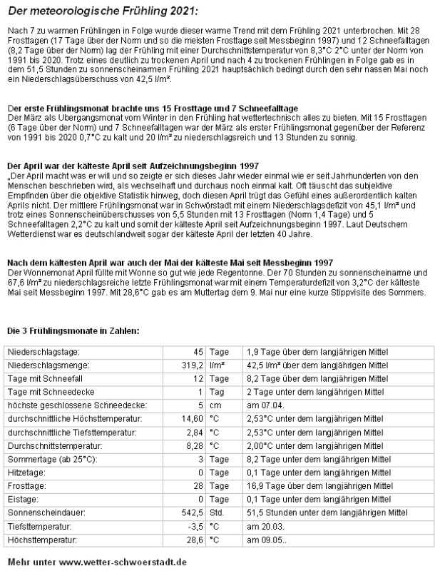 Hier noch der Rückblick auf den meteorologischen Frühling 2021 von 79739 Schwörstadt: