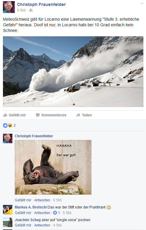 Wer sagt denn, dass die Lawine aus Schnee bestehen muss? Könnte doch auch sein, dass da eine geballte Ladung Dummheit im Anmarsch ist.