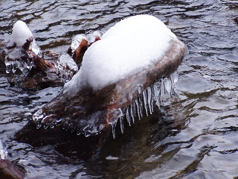 Am Ufer hat der Frost schöne Kunstwerke fabriziert