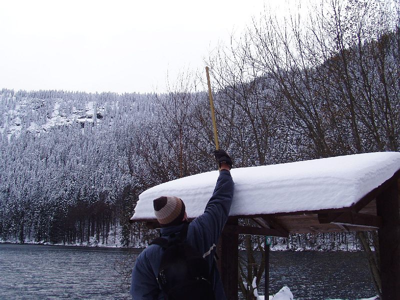 Stefan Rubach mißt die Schneehöhe. ca 26 cm waren es hier.