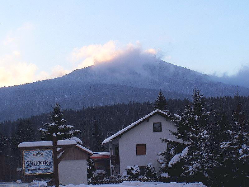 Nach der Fahrt zurück nach Bayern. Der Arber in Hochnebel gehüllt