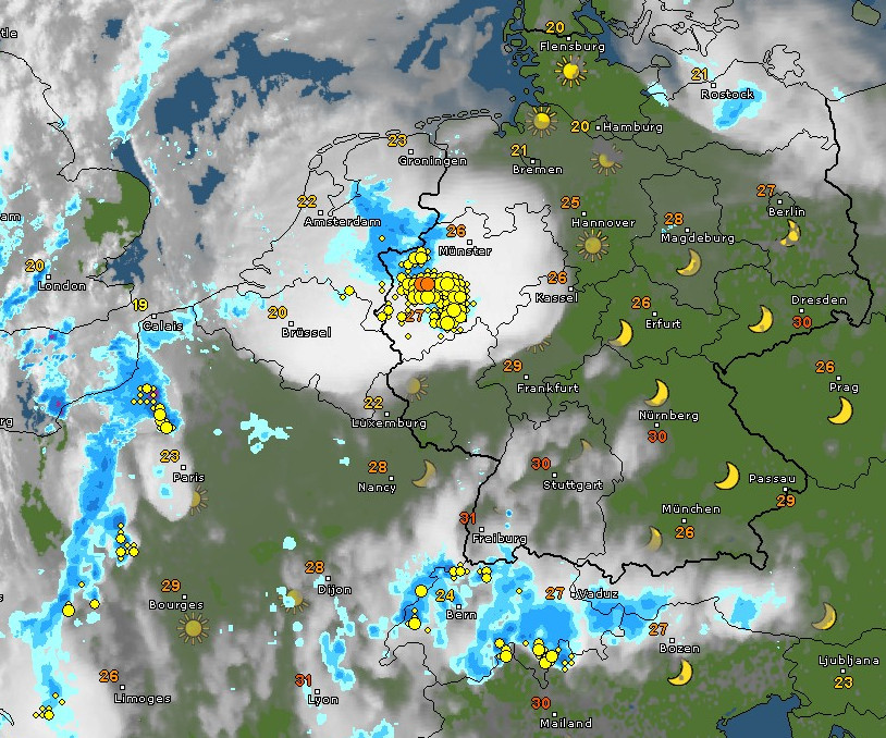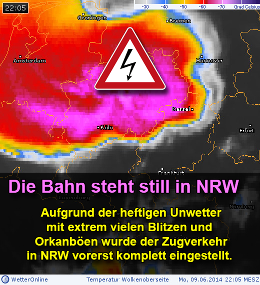 Jaja, ich lebe noch. Unser Kreis grenzt zwar an Nordrhein-Westfalen, aber das stark betroffene Ruhrgebiet ist doch ein gutes Stück westlich von hier. Hier hat es am Abend pötzlich ordentlich geblasen, weiter nördlich war am Spätnachmittag Gewitter, aber sonst war nix, abgesehen von mörderischer Hitze. Bei den Freiluftfesten sind reihenweise Leute umgekippt und mussten von den Sanis wieder aufgepäppelt werden.
