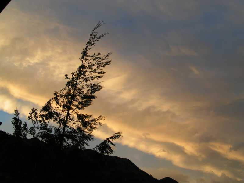 Mit mehr als 100 km/h fegt der Föhn seit gestern Abend auch durch das Sarneraatal. Sogar die Stühle auf dem Balkon wurden umgestürzt und gegen das Geländer gedrückt. Zu meinem Erstaunen sind aber bisher keine Bäume umgeknickt. Das Foto knipste ich heute morgen kurz nach 7 Uhr. Darauf gut erkennbar sind unter anderem die typischen schlangenförmigen Föhnwolken. Zu dieser frühen Stunde zeigte das Thermometer übrigens 21 °C.