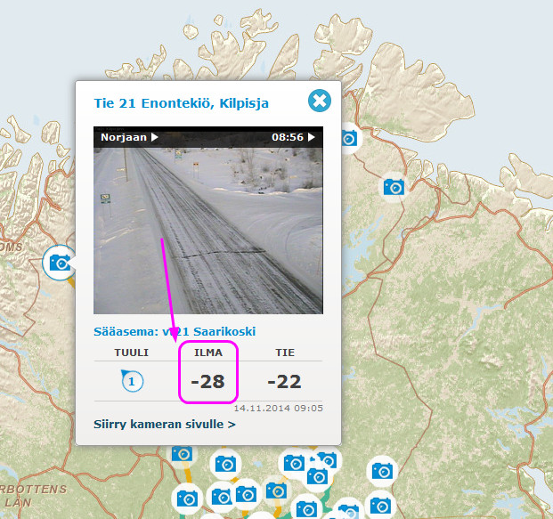 Die Strassen-Kamera und Messtation aus Norjaan zeigte soeben -28°.