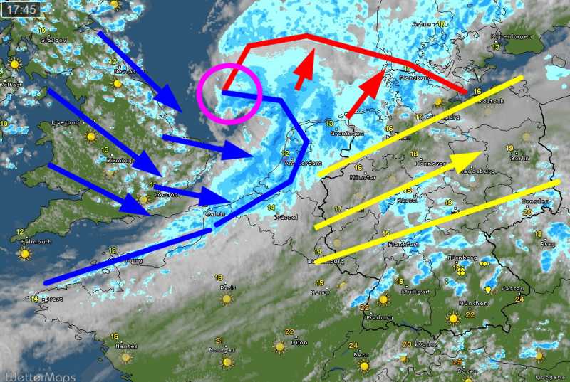 Aber immerhin wartet über BeNeLux noch ein Paket, das zieht zwar auch eher nordostwärts, aber die TIefkonstruktion selber zieht eher Ostwärts. Wer weiss, vielleicht findet das Regenband auch Deinen Garten!