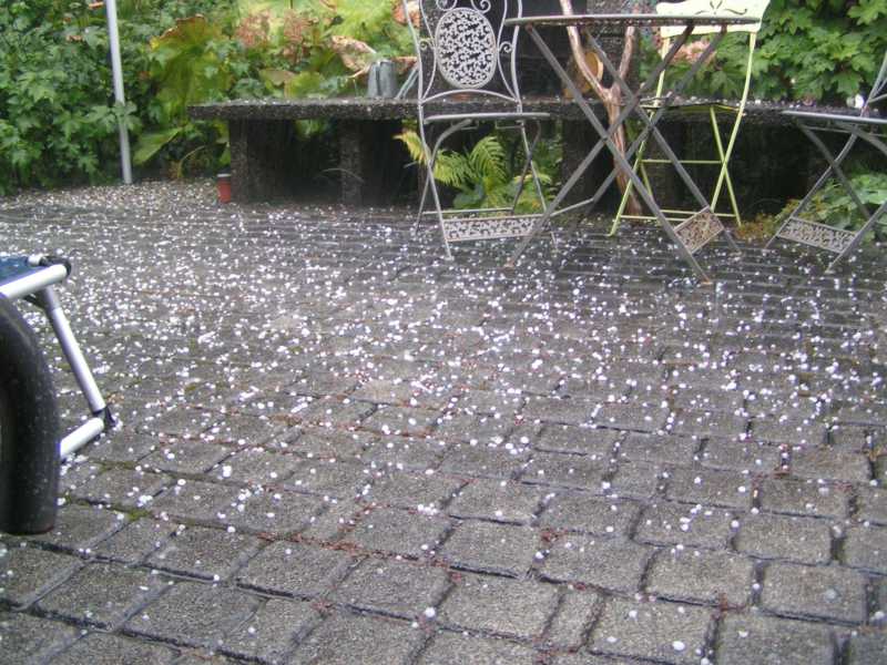 Zwei Tage später folgt das zweite Hagelgewitter dieser Woche. Diesmal gab es jedoch etwas grössere Hagelkörner, durchschnittlich mit 10-15mm Durchmesser, einzelne Körner mit mehr als 30mm Längsdurchmesser, die während gut 10 Minuten vom Himmel fielen.