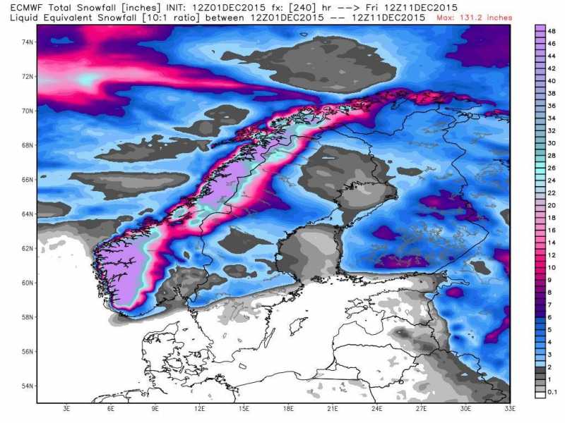 Norwegen wird in den nächsten 10 Tagen eingeschneit ... bis zu 1m Schnee!
