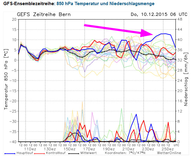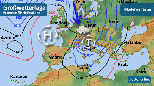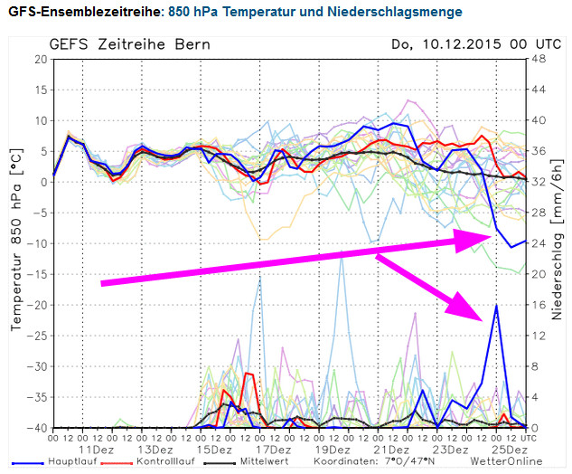 Da haben wir Meteorologen heute Morgen nicht schlecht gestaunt: Die Berechnung eines der führenden Wettermodelle zeigt genau für Heiligabend eine richtige Schneebombe für Süddeutschland. Nach einem bis zu 10 Grad milden Tag würde pünktlich zum Abend des 24. Dezember die Temperatur in den Frostbereich sinken und der kräftige Dauerregen in Schnee übergehen. In Baden-Württemberg und Bayern würden bis in tiefe Lage ein paar Zentimeter, Richtung Alpenrand auch über 20 Zentimeter fallen und der erste Weihnachtstag sich verschneit präsentieren.