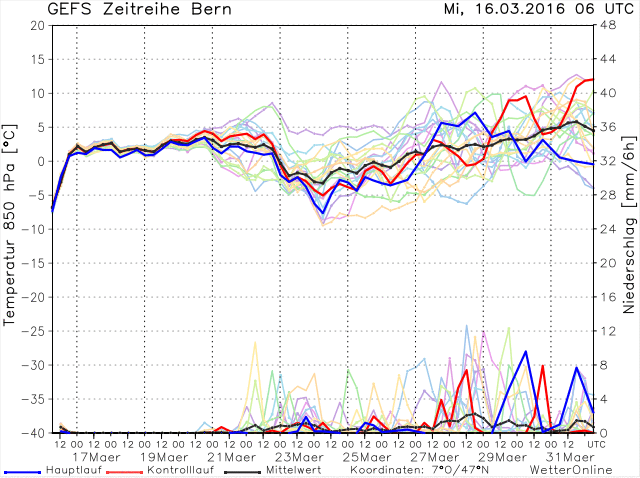 So wie sich die ENS präsentieren, scheint es an Gründonnerstag und Karfreitag ungemütlich kühl zu werden.
