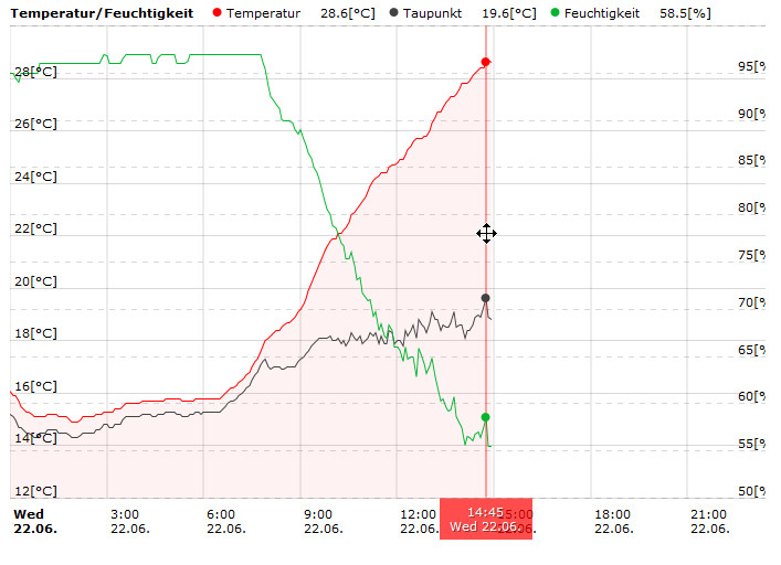 Gut, "heiss" ist es noch nicht, sehr warm kann man dem aber schon sagen. Doch der Taupunkt ist das, was einem so wunderbar schwitzen lässt ......