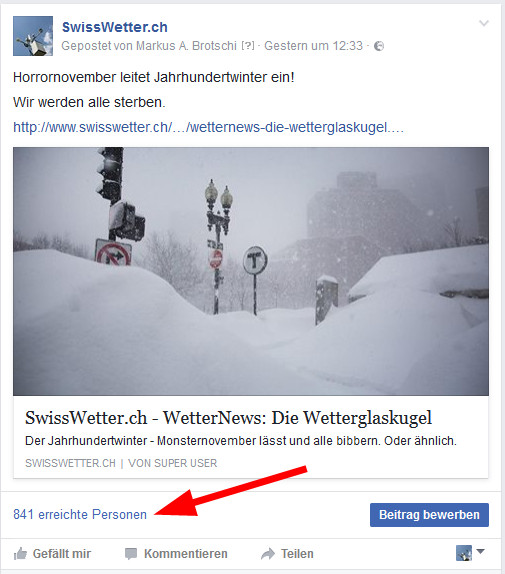 Ich liess es mir nicht nehmen - nachdem bei mir das Mass voll war - ein kleines Berichtchen über den anstehenden Weltuntergang zu schreiben. Der wurde auf der SwissWetter-Facebookseite immerhin ein paar hundert Mal gelesen.
