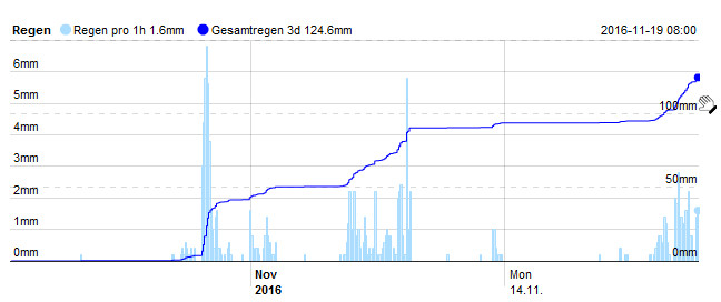 Inzwischen hat es diesen November hier 124 Liter runtergeleert. Ganz schön viel - aber auch nötig für ds Grundwasser.