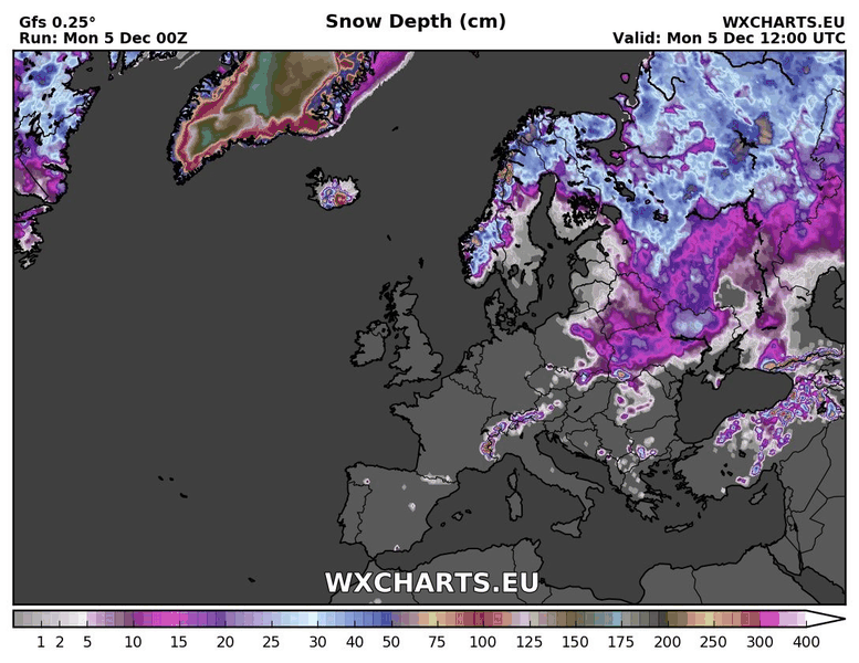 In Sachen Schnee tut sich in den Karten aktuell gar nichts. Nein, krasser: ÜBERHAUPT nichts. Gemäss den aktuellen Modellläufen wird Mitteleuropa komplett ausgespart. Skandinavien hingegen reichlich beglückt: