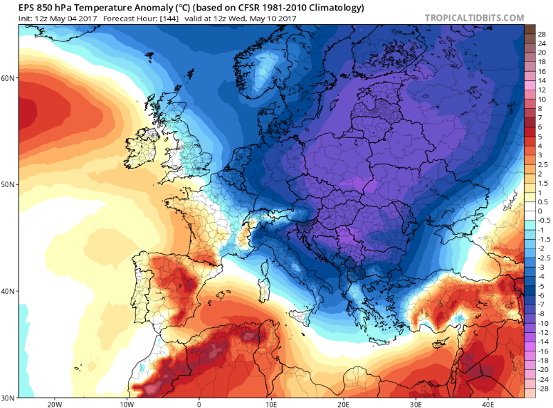 As crazy this might look, latest ECMWF EPS (ensemble model) is showing a significant cold outbreak more and more likely by mid next week. This is very serious, could easily bring damaging frost into E Europe, Balkan peninsula and parts of central Europe. Stay tuned for updates!