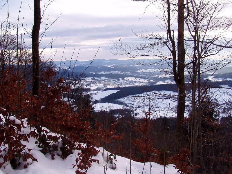 Blick ins Regental bei Cham. Ganz unten nur Schneereste, aber sonst trotz Tauwetter Schnee ab ca 400 m