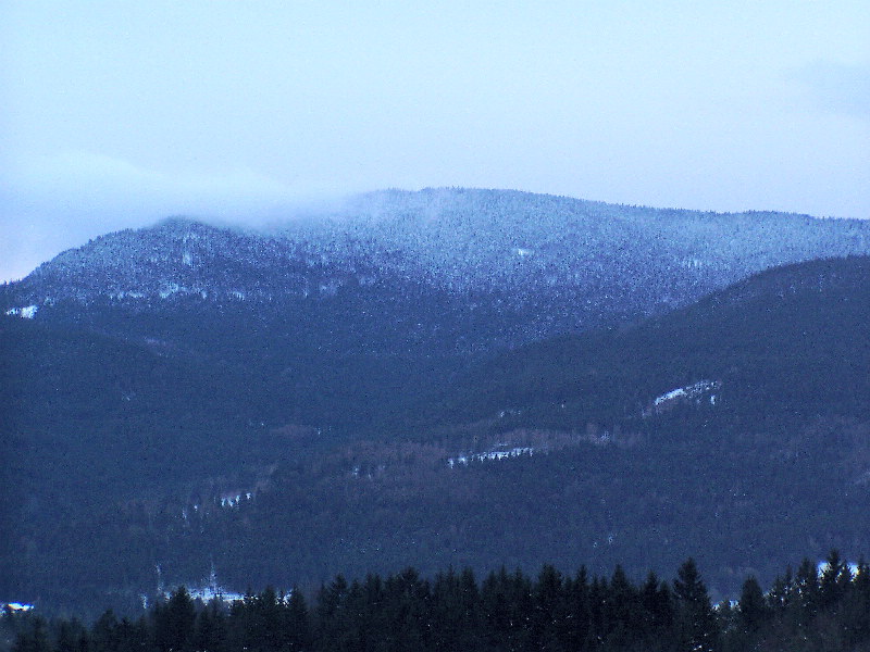 Zum Schluss ein blick zum Osthang des Kaitersberg mit der Frostgrenze auf etwa 800 m (Ich konnte am Autothermometer an der Höllhöhe auf 700 m +0,7° um 15 Uhr messen)